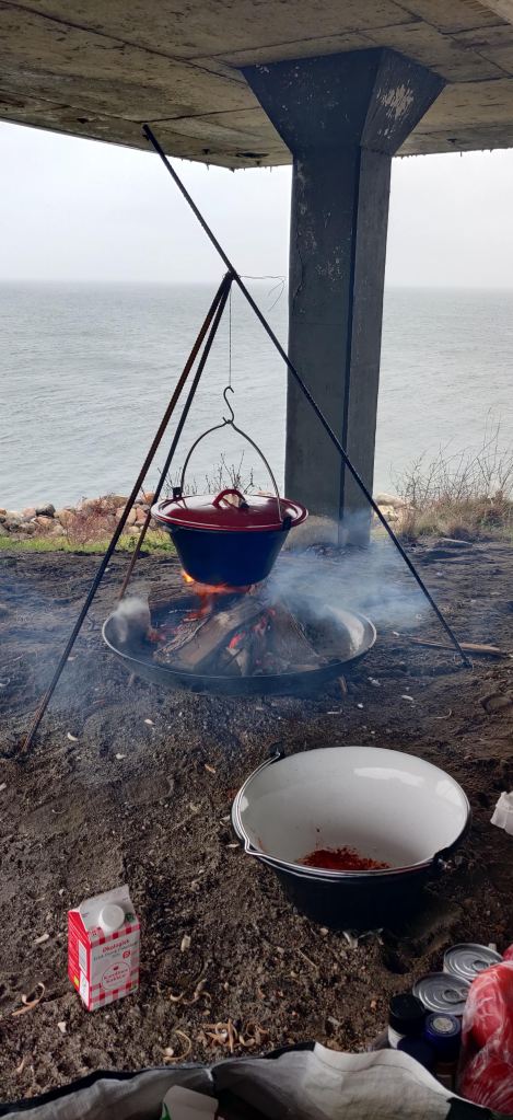 Til frokost fik vi tomatsuppe med pasta, det var en tydelig udfordring at vi var øens første spejder-gæster siden sommeren 2019, så brændet var vådt og udstyret misligholdt, noget af en omvæltning fra det vi har til vores ugentlige møder.