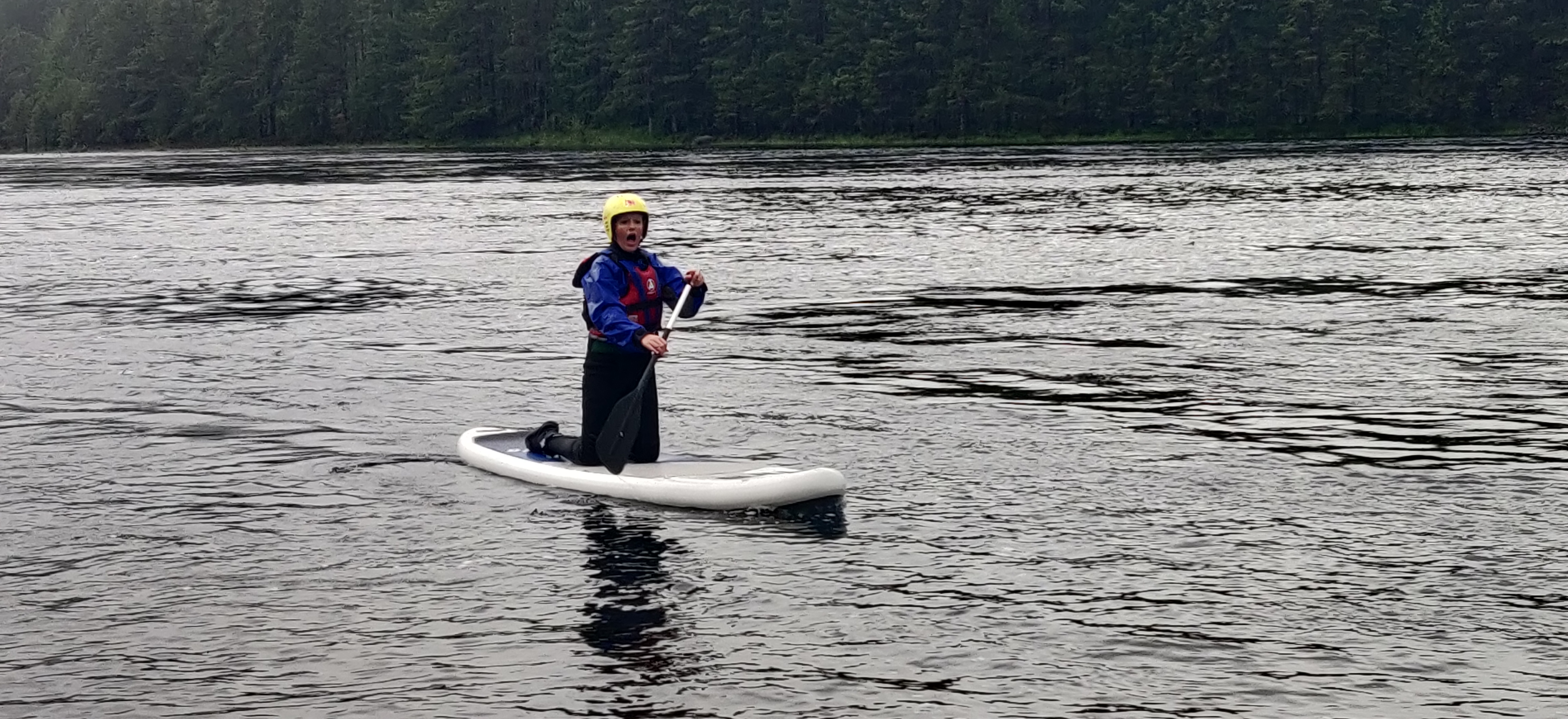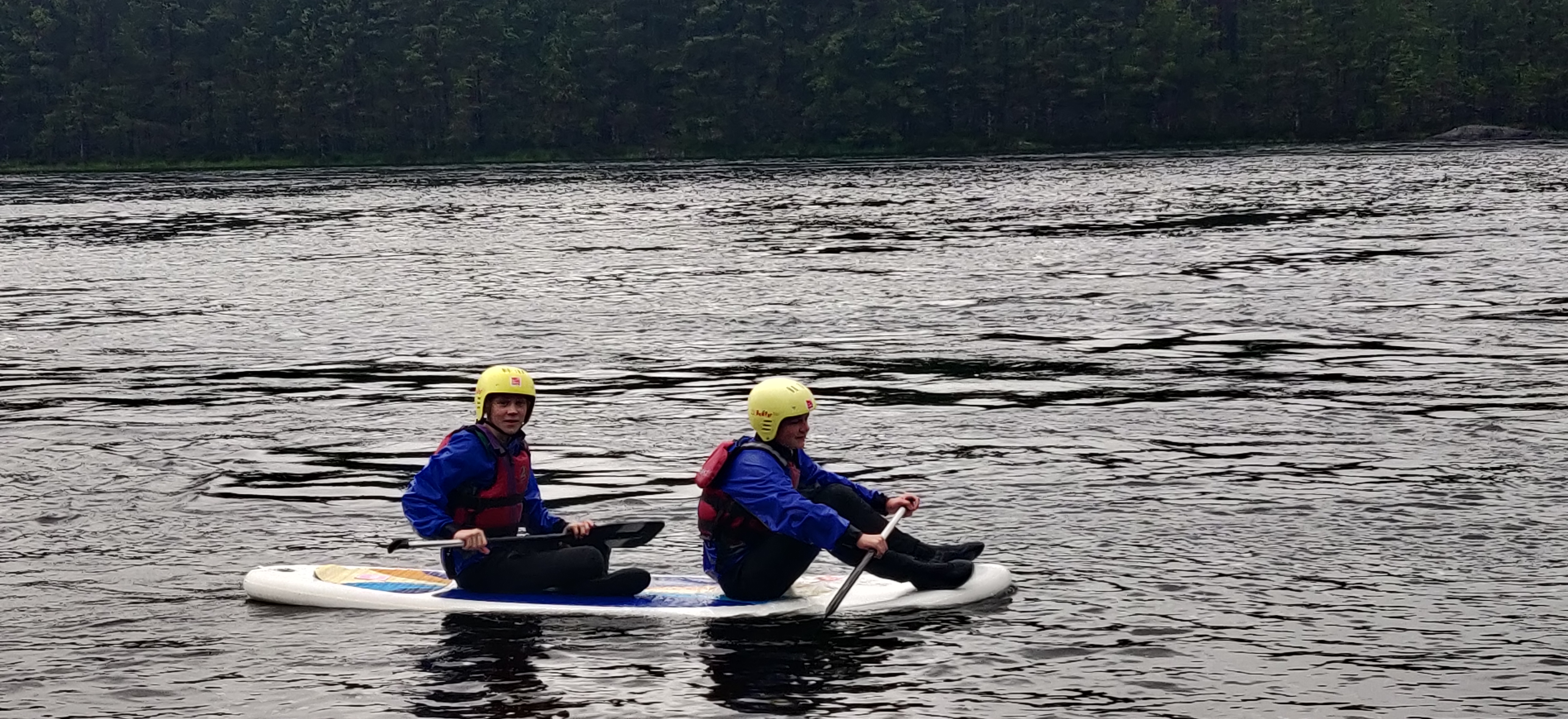 herefter kom op på nogle paddleboards. først alene og siden i par. det var svært at holde balancen, især for dem med et højere tyngdepunkt. Især Freya viste sig som et naturtalent på boardet.