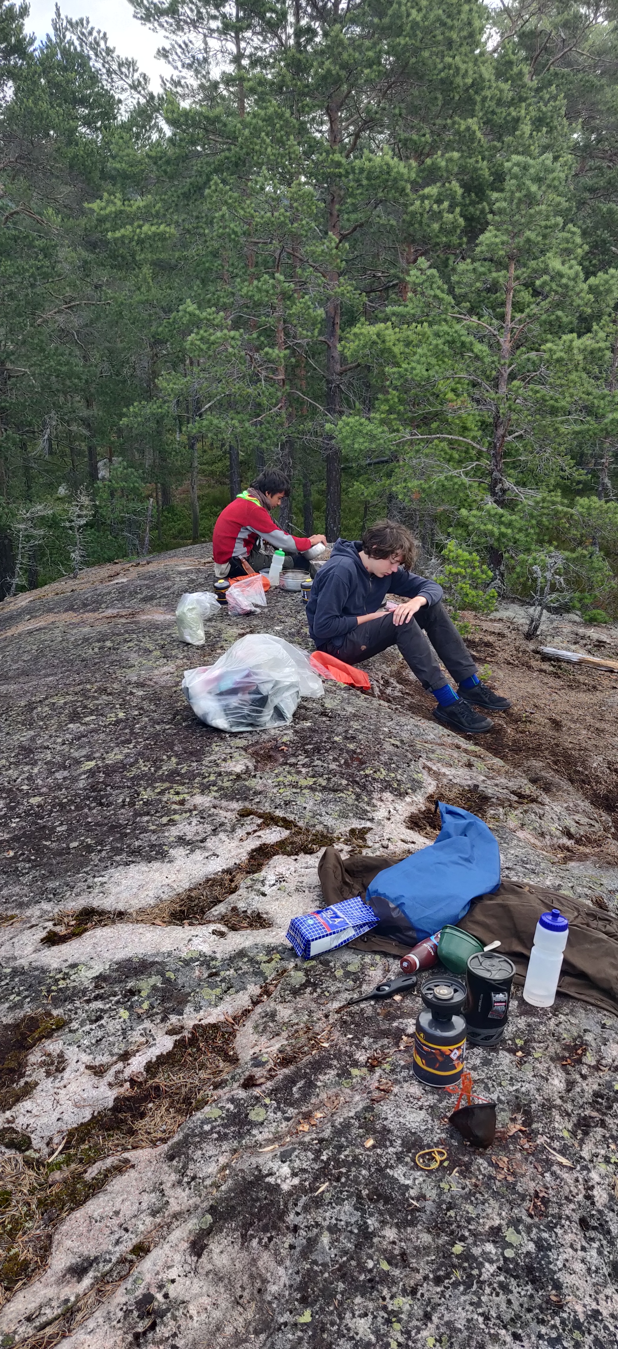 Til morgenmad blev der lavet havregrød toppet med de blåbær der voksede overalt på øen. en enkelt kop kaffe blev det også til inden vi drog videre fra vores helt egen ø.