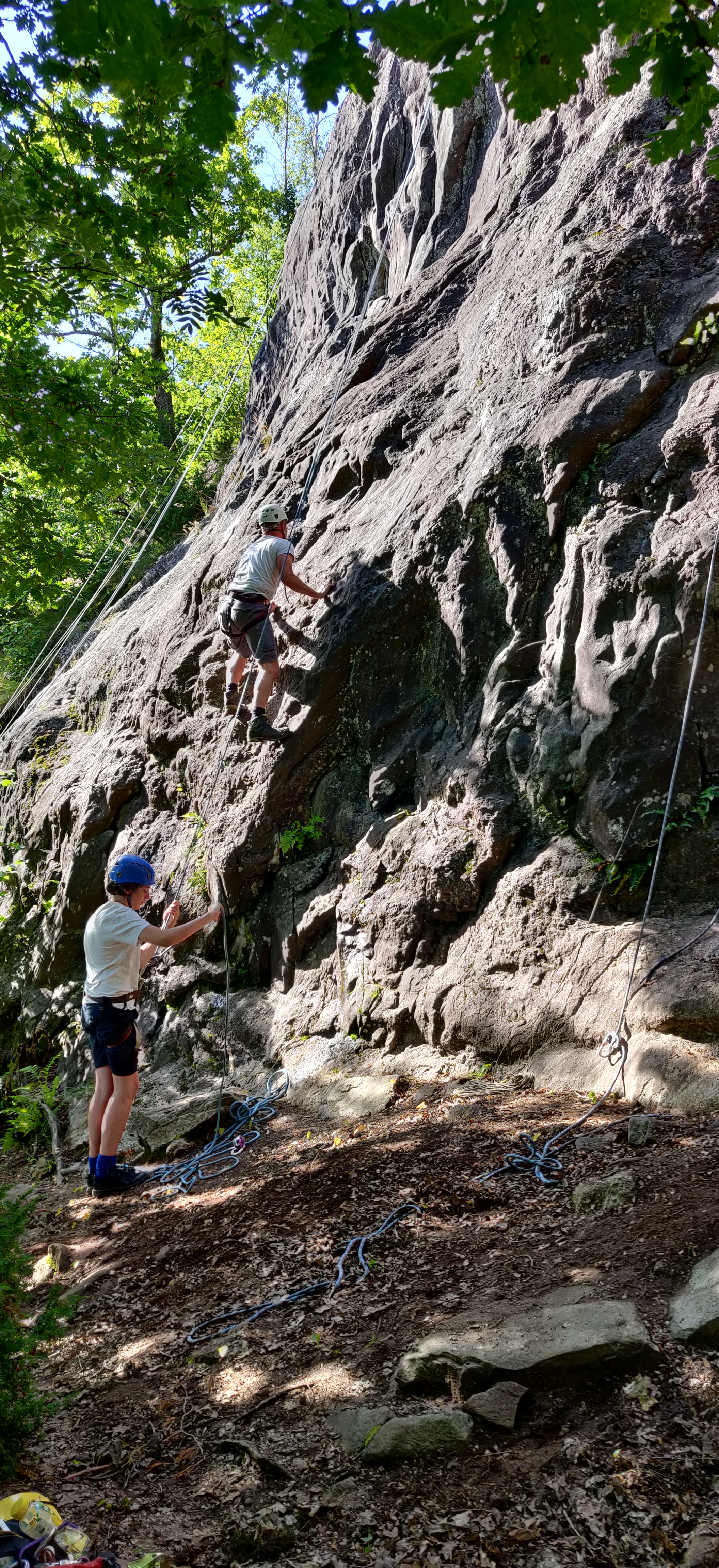 Fredag havde vi lejrens sidste aktiviteter, rappelling og bouldering. Igen havde troplederen styr på det. Hele troppen var klar ved lejrens store klatretårn. Vi blev derfor noget overrasket da minibusser kørte op og bad os hoppe på. klatretårnet var åbenbart for yngre deltagere, vi skulle selvfølgelig gøre det på rigtig klippe uden en masse dejlige korrekt placerede greb.