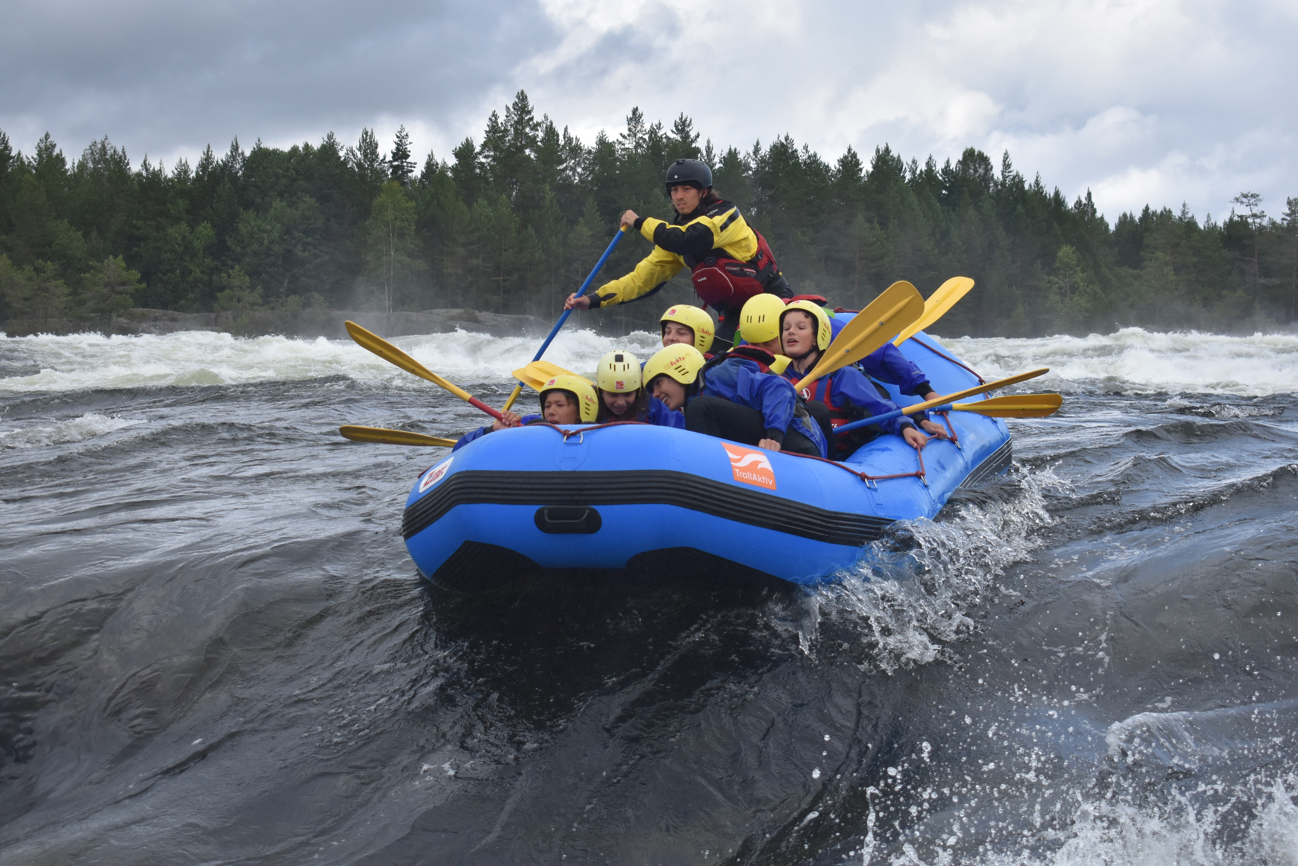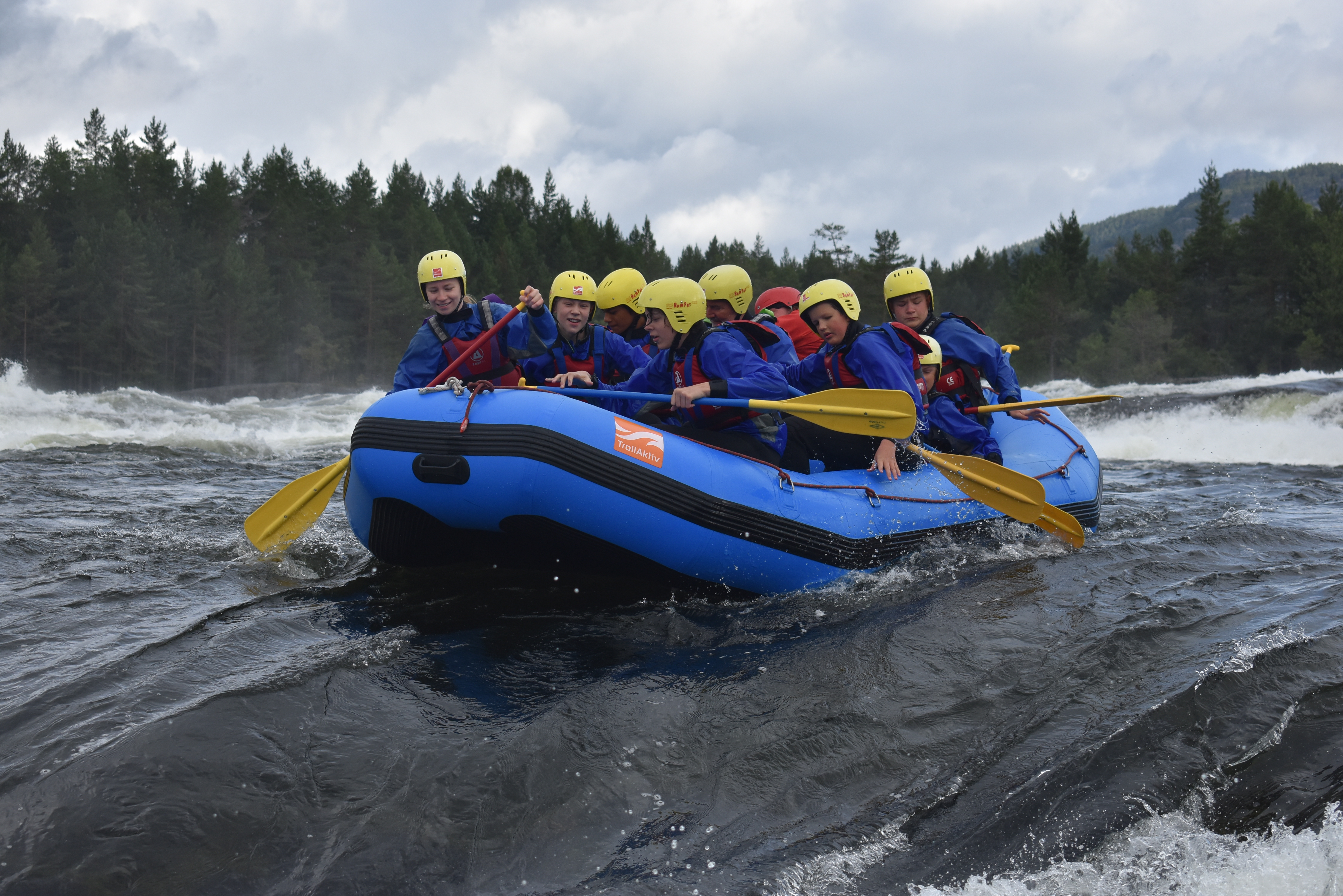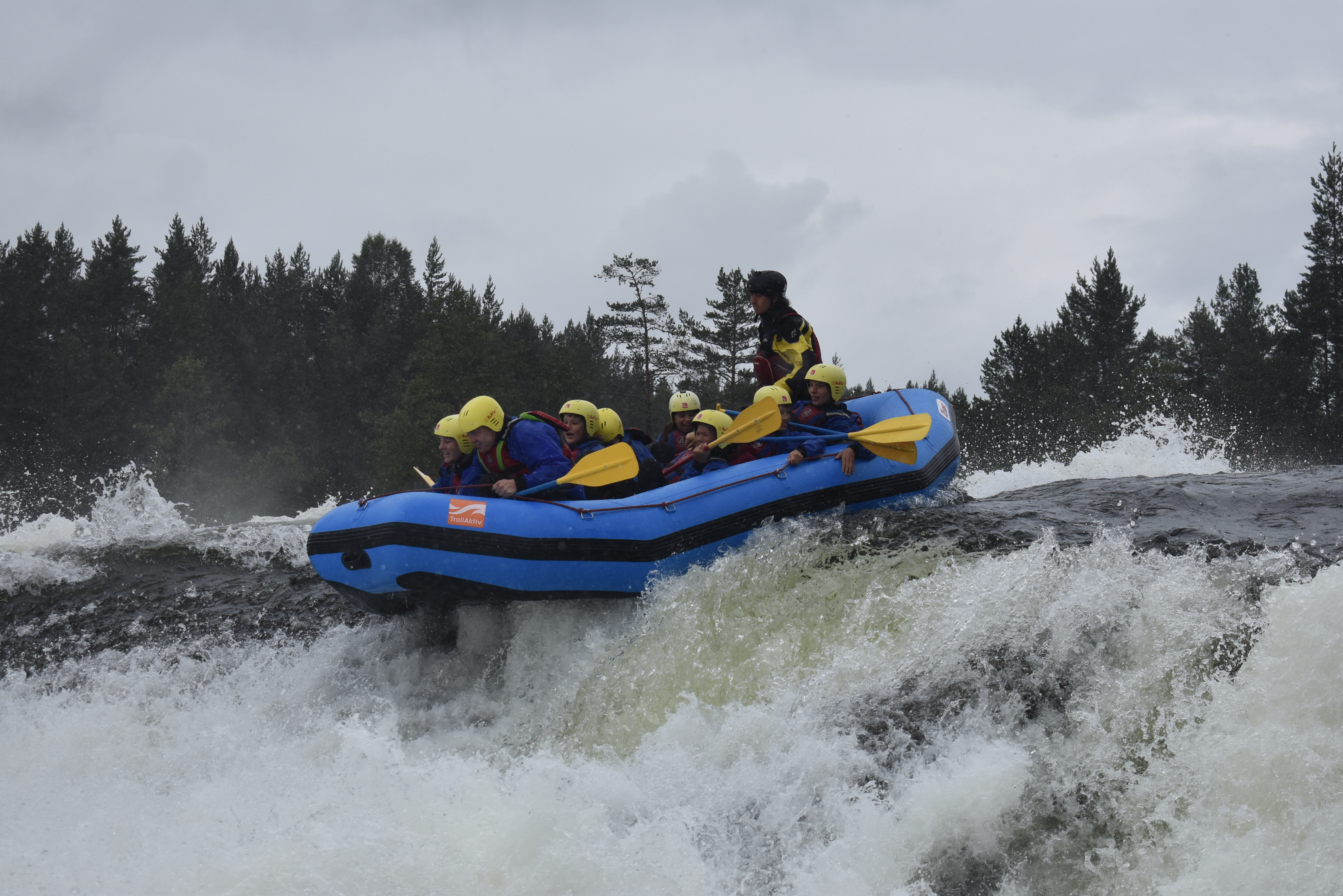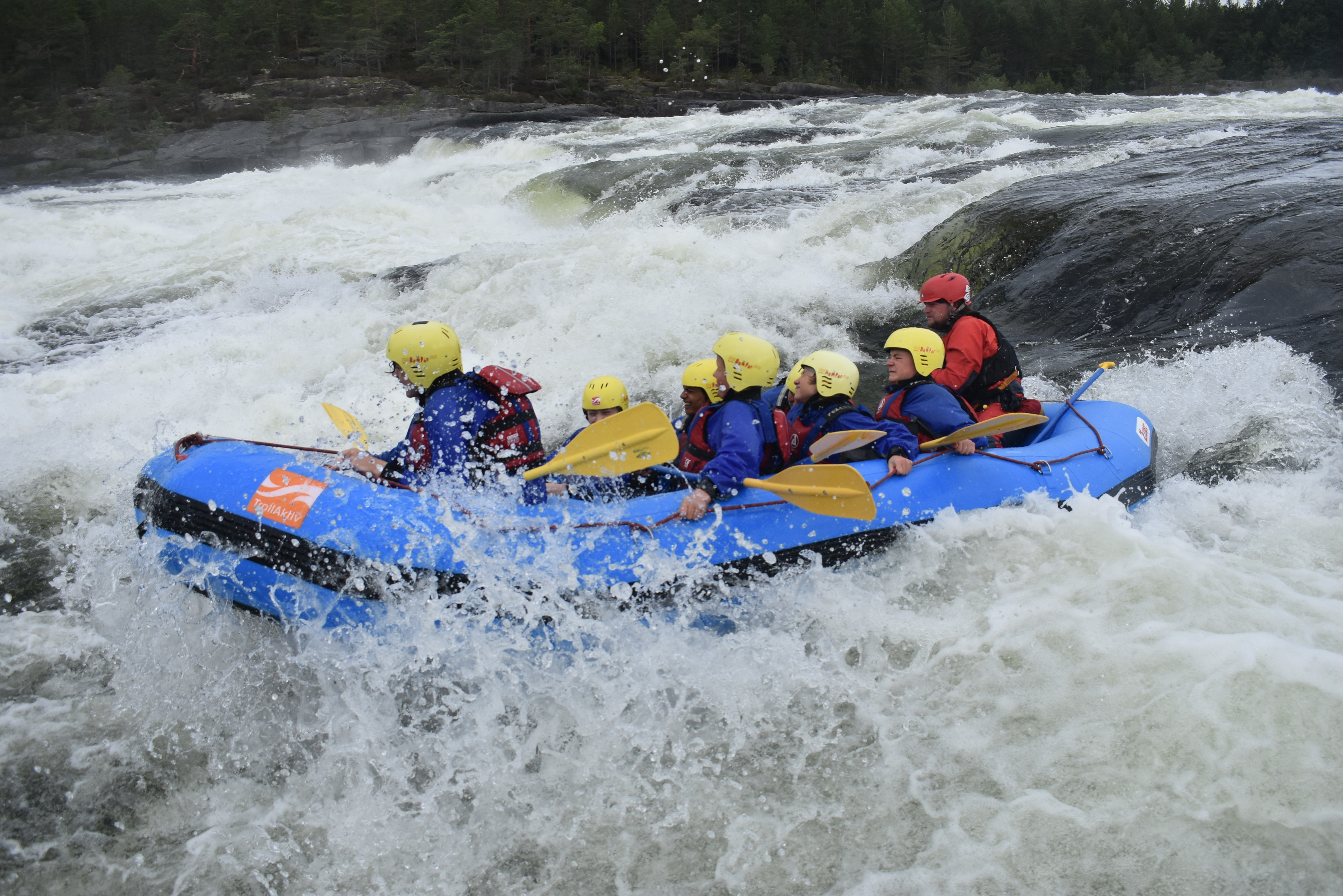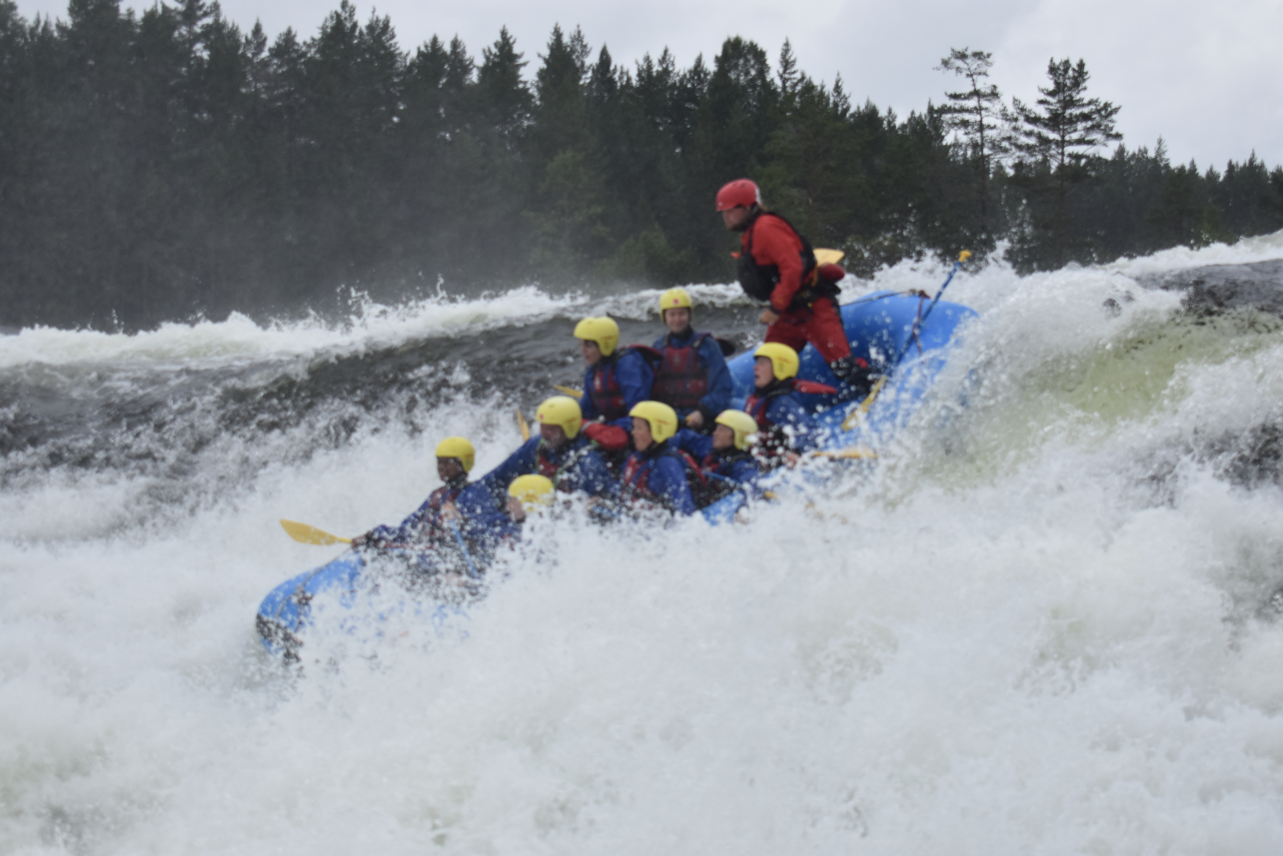 Dagen efter bød også på regn i stor stil, men det gjorde ikke noget, for vi skulle whitewater rafter og spille paintball.