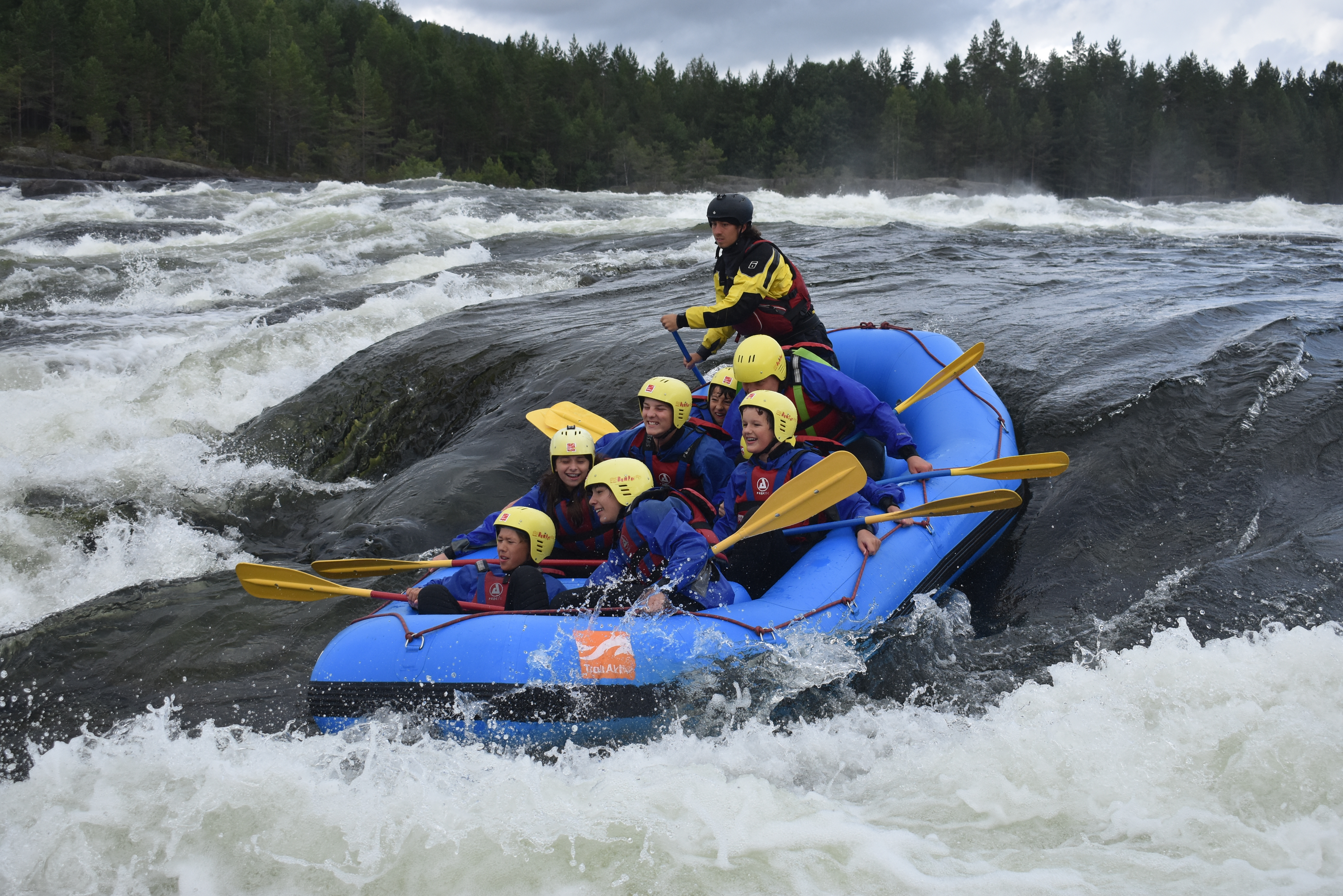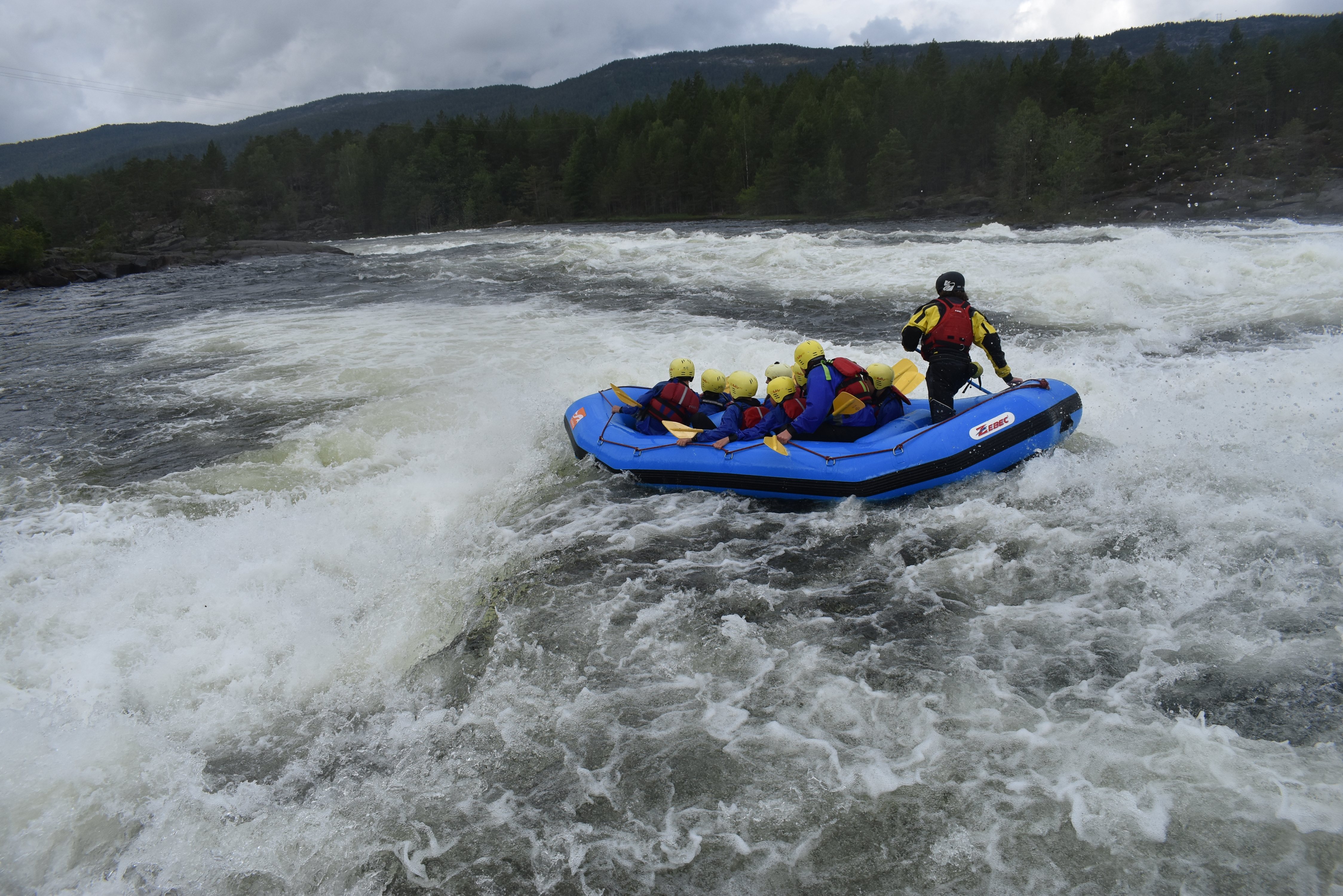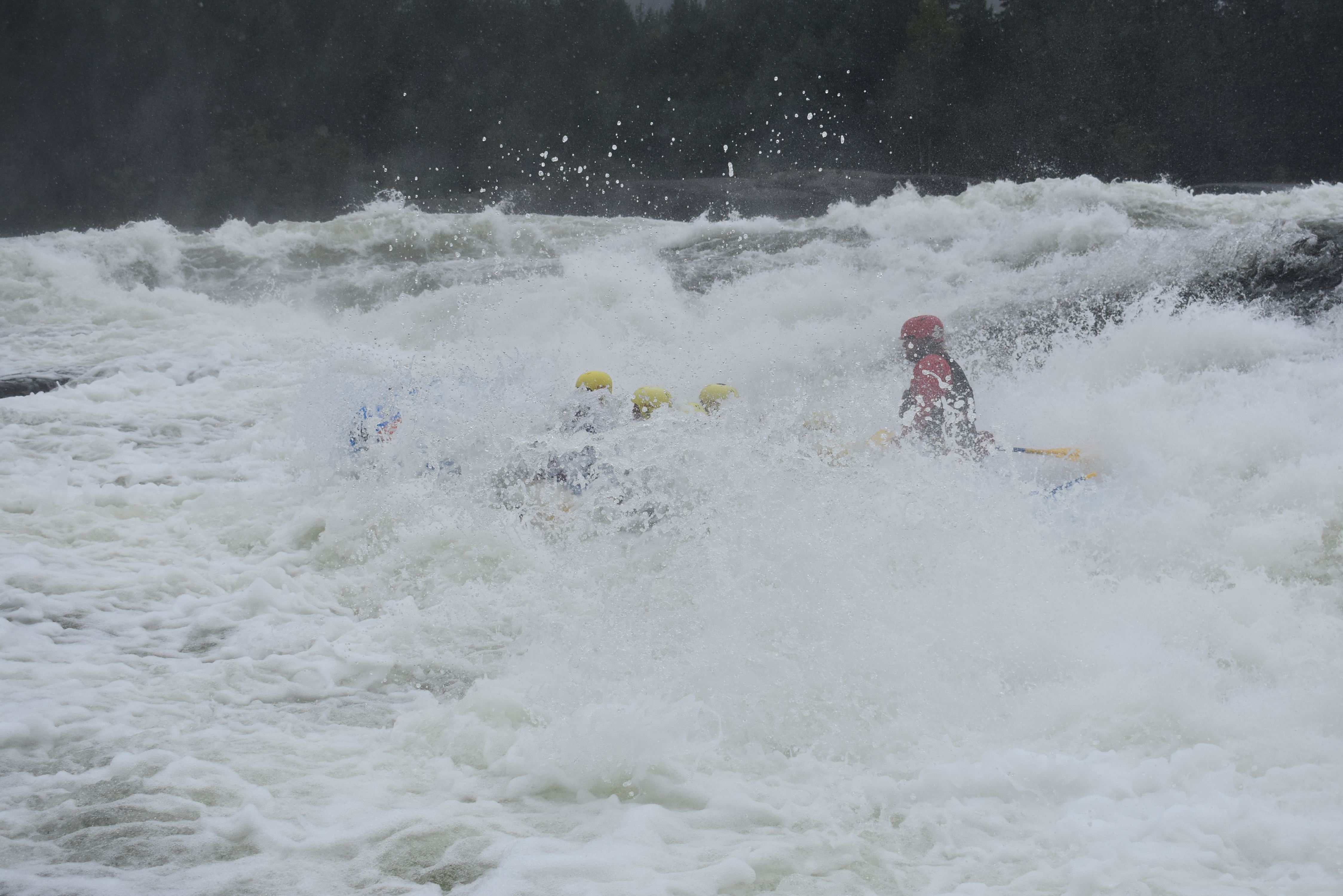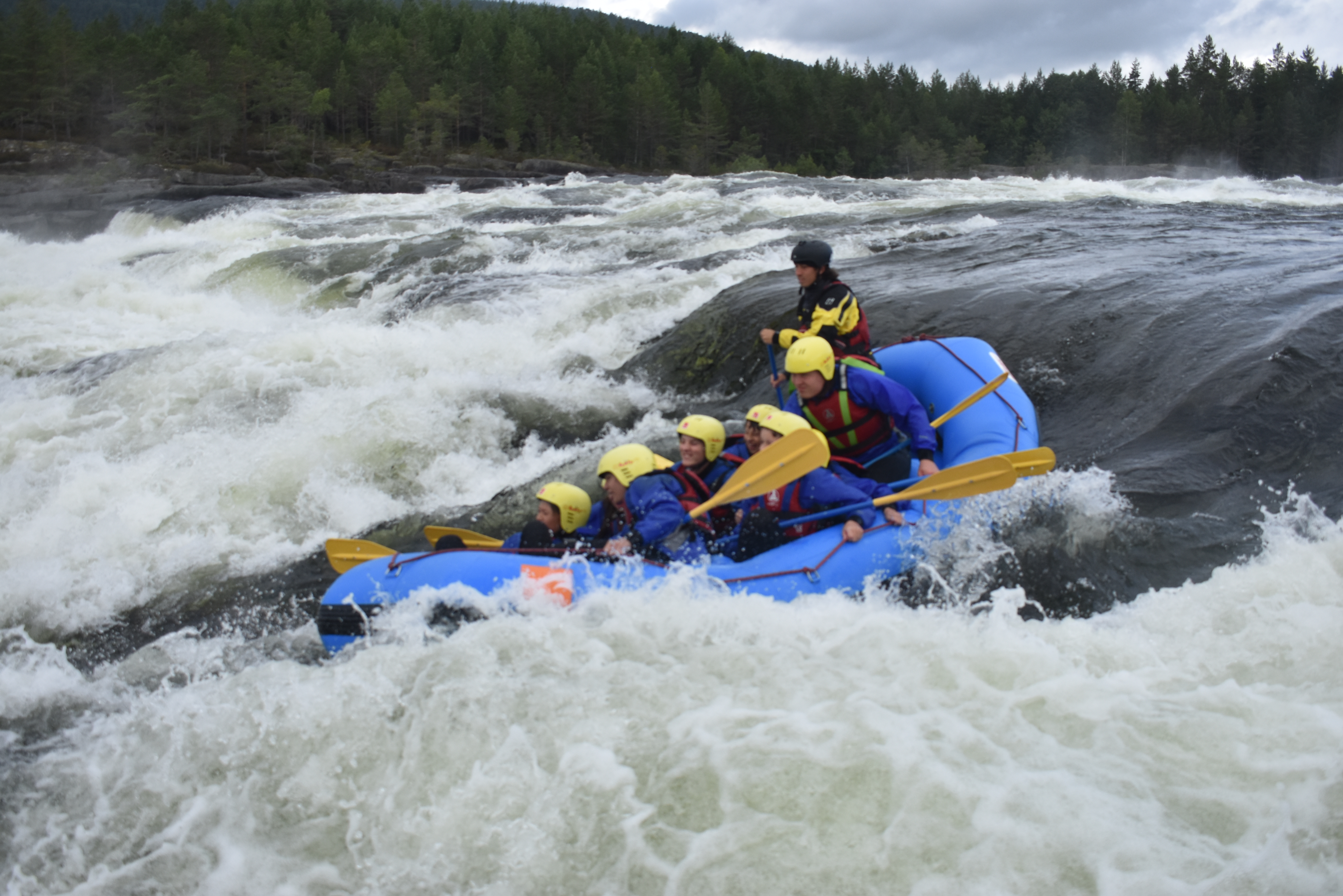 På med våd udstyret fra sidst og afsted i busser til starten af de vilde rapids. delt op i to gummibåde trænede vi forskellige manøvre på roligt vand inden vi prøvede kræfter med 4 store rapids. særligt for de forreste i båden var det en våd men sjov fornøjelse. vi gennemløb turen 2 gange og byttede rundt i båden. til sidst prøvede vi at surfe på et af rapidsne, hvilket var ret svært.