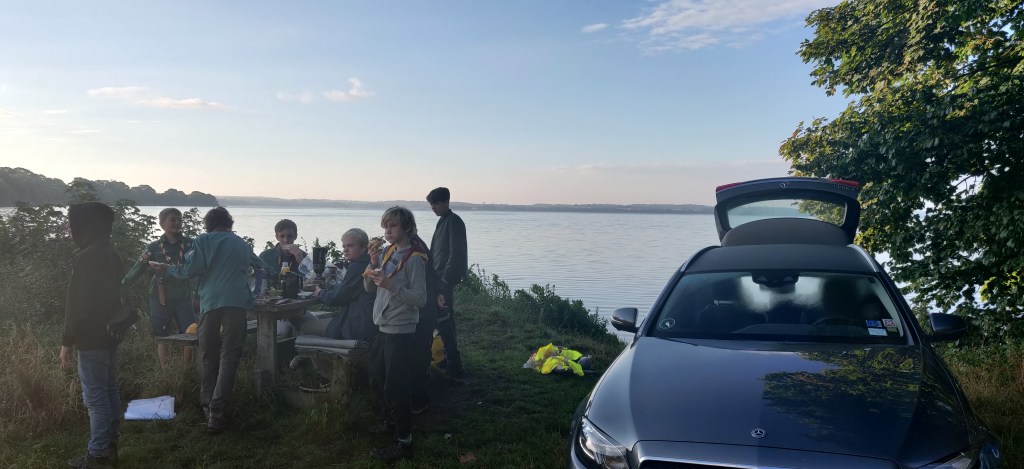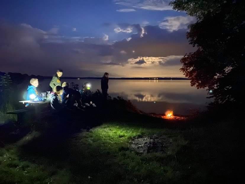 8.30 var lejren pakket sammen og foran var der 3 km langs med Esrum sø hen til Kongens bøge. her kom Esrum sø overfarten og hentede alle spejderne og sejlede dem til fredensborg slot, hvor vi evaluerede på oplevelsen og nød slots parken. tak for en god tur.