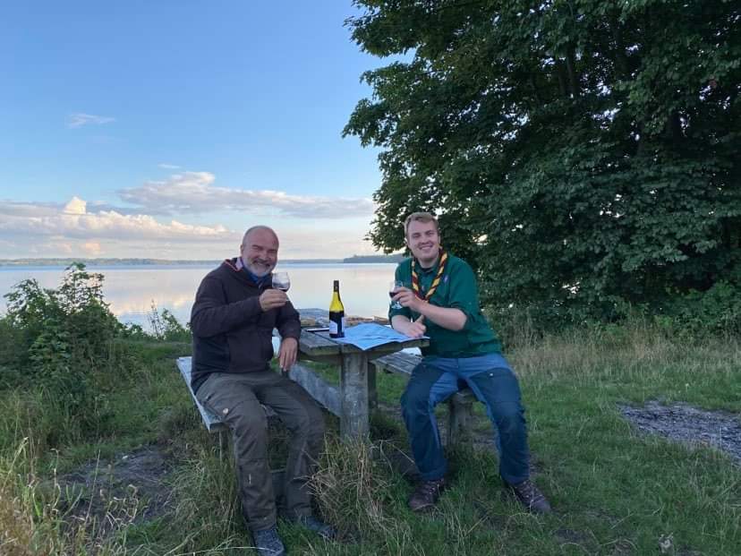 Lederne ses her med lidt vin ved 18 tiden. teltet er slået op og der ventes på patruljernes ankomst.