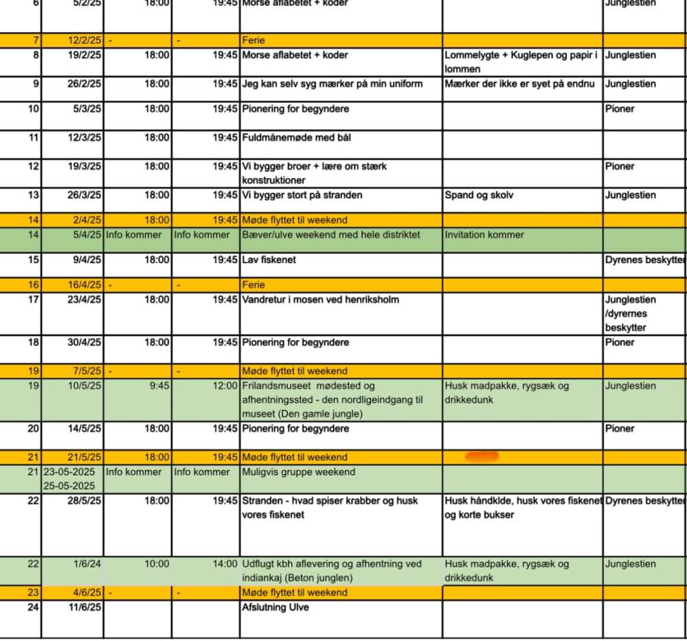 Man er Ulv, når man går i 2.- 3. klasse, og vi har møde hver onsdag fra 18.00-19.45. Vi er på flere weekendture om året og en lidt længere lejr i skolernes sommerferie.